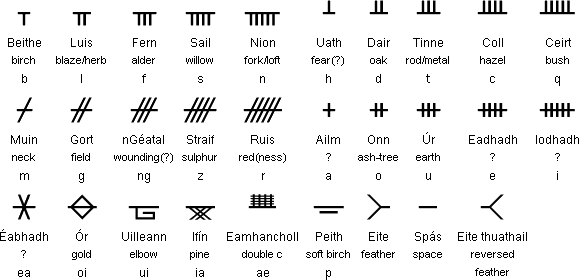 The Ogham, or sacred Druidic alphabet, contained hidden secrets of magic and divination. Only the initiated could understand these occult meanings. The ancient Celts had a kinship with trees which is shown in this magical alphabet and in their Tree Calendar. Further proof of their respect for trees is in the old Celtic word for Oak (Duir) and the word Derwydd or Duirwydd (oak-seer).